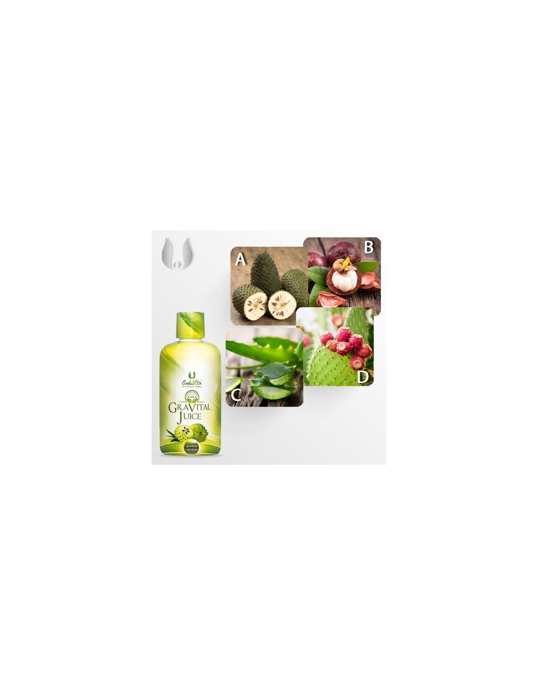 CaliVita a reusit sa extraga esentele a patru superfructe delicioase graviola, mangostana, nopalul si aloe vera, provenite de pe culturi organice, intr-o singura sticla. Rezultatul este GraVital Juice, un aliat de nadejde impotriva tumorilor, bacteriilor, virusilor, fungilor si infectiilor.